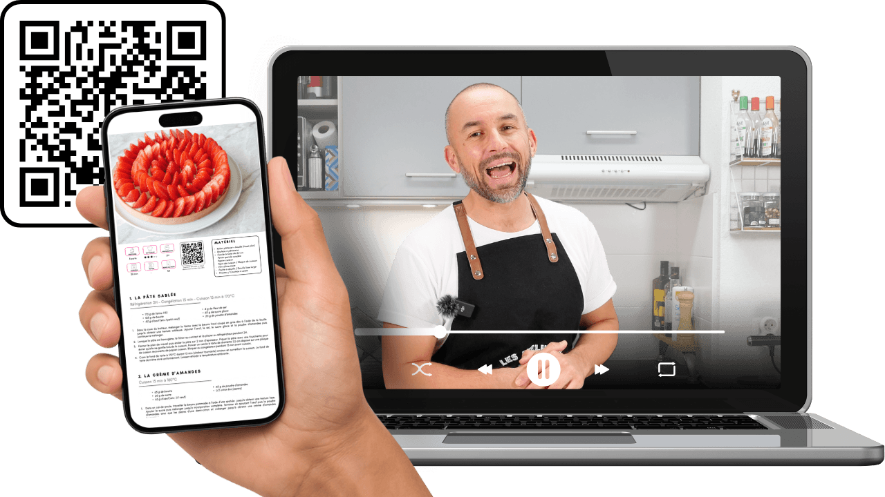 Scanner le QR Code pour retrouver facilement la recette en vidéo et la visionner autant de fois que tu le souhaites.